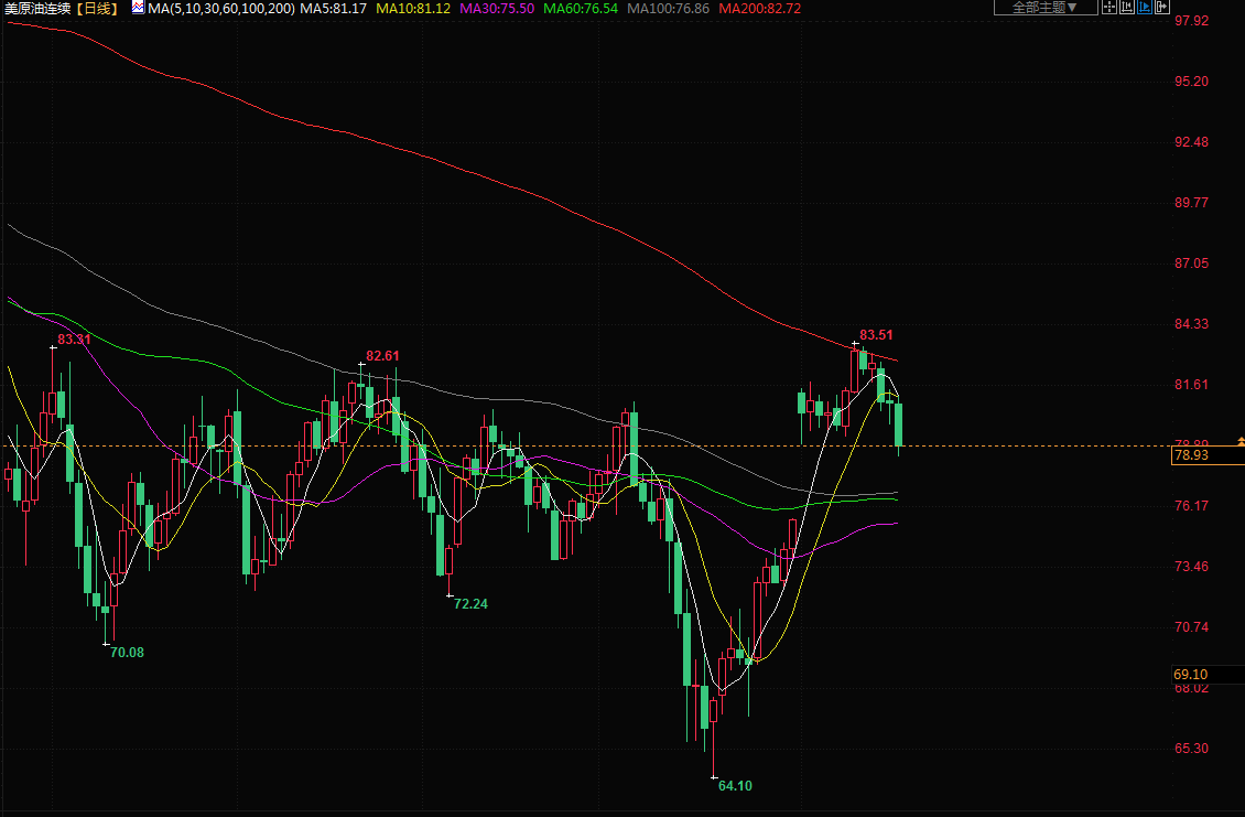 布伦特原油期货下跌2.0%,报收于每桶83.12美元。5月份交割的美国原油下跌2.1%,报收于79.16美元。