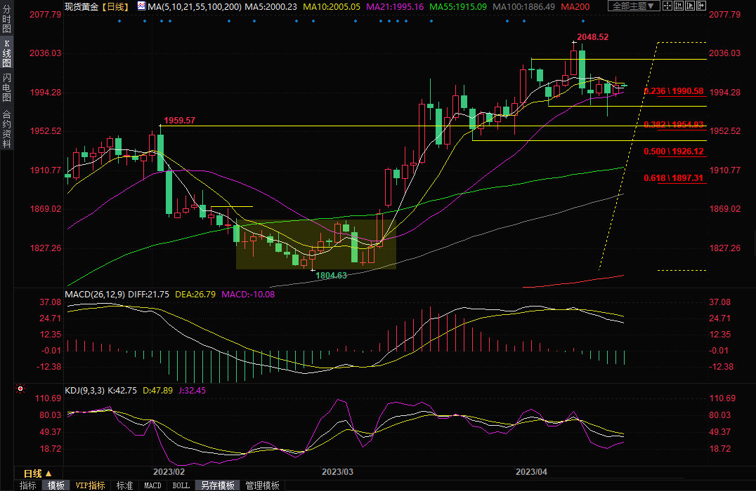 整体来看,美国初请失业金等数据表现不佳,对美元和美债收益率拖累比较明显,这吸引逢低买盘支撑金价。但美联储官员继续为5月份加息做铺垫,市场对6月份再加息一次的预期有所升温,这令多头有所顾忌,短线金价偏向继续高位震荡运行,而震荡下行的可能性要略高一点。北京时间10:13,