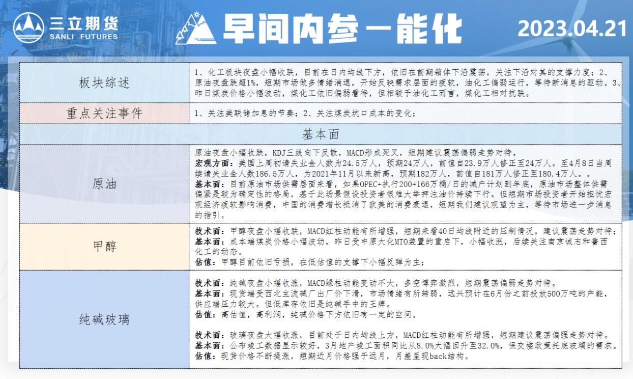 标题:三立期货4月21日早间内参——能化