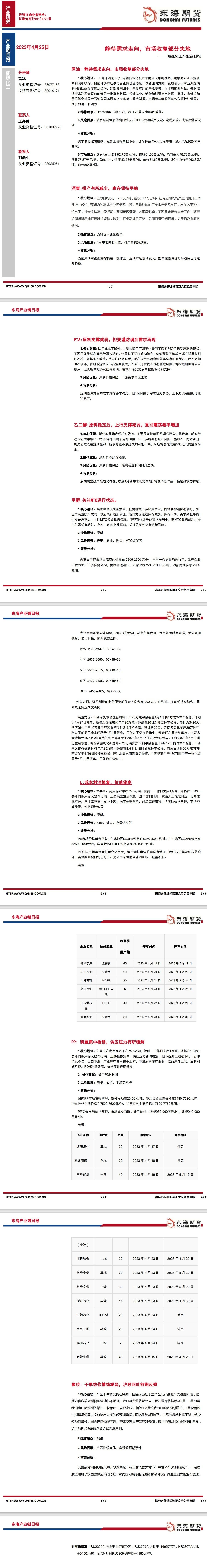 标题:【东海期货4月25日产业链日报】能化篇:静待需求走向,市场收复部分失地