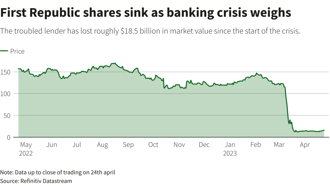 图:受银行业危机拖累,第一共和银行股价重挫