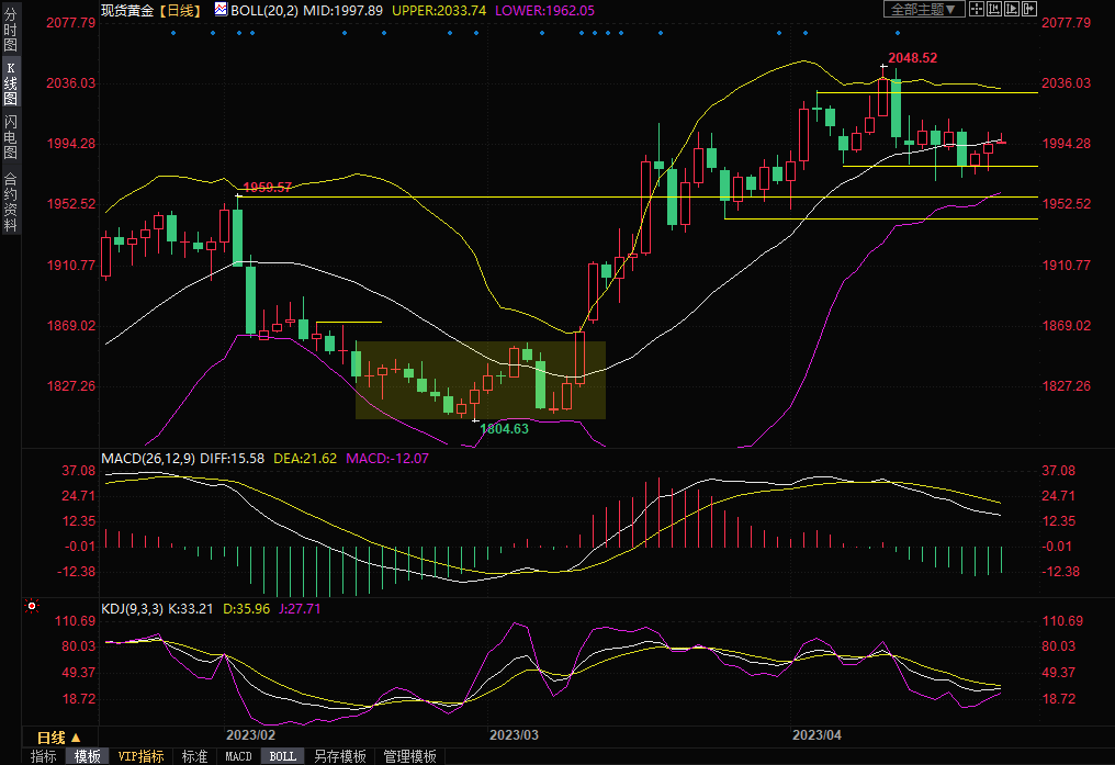整体来看,虽然美元指数周二反弹,令多头有所顾忌,但这主要是因为避险情绪升温,而这也给金价提供支撑,银行业动荡前景、美国债务危机、经济数据疲软、地缘局势担忧,美股大跌、美债收益率大跌,这些因素都偏向支撑金价,金价已经连续三周收盘于1980关口上方,短线看涨信号有所增加,后市有望上探布林线上轨2033.78附近阻力。鉴于目前金价还受到2000关口阻力压制,下方继续关注1980关口附近支撑,如果意外收盘于该位置下方,则增加后市看空信号。北京时间10:14,