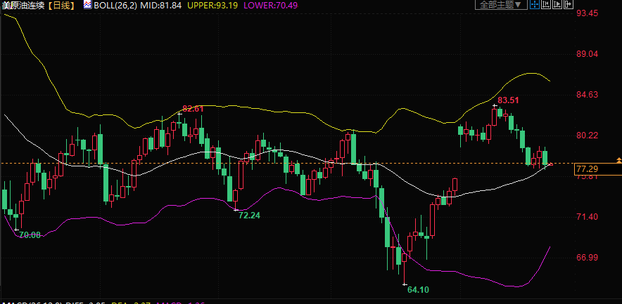 美原油交投于77.30美元/桶附近;油价周二下跌近2%,因对经济放缓的担忧加深且美元走强,盖过了对中国需求增加和美国原油库存下降的希望。