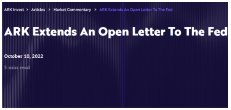 方舟投资(Ark Invest)首席执行官伍德(Cathie Wood)在一封致美联储的公开信中表示,美联储对通货膨胀的强硬立场可能是错误的。