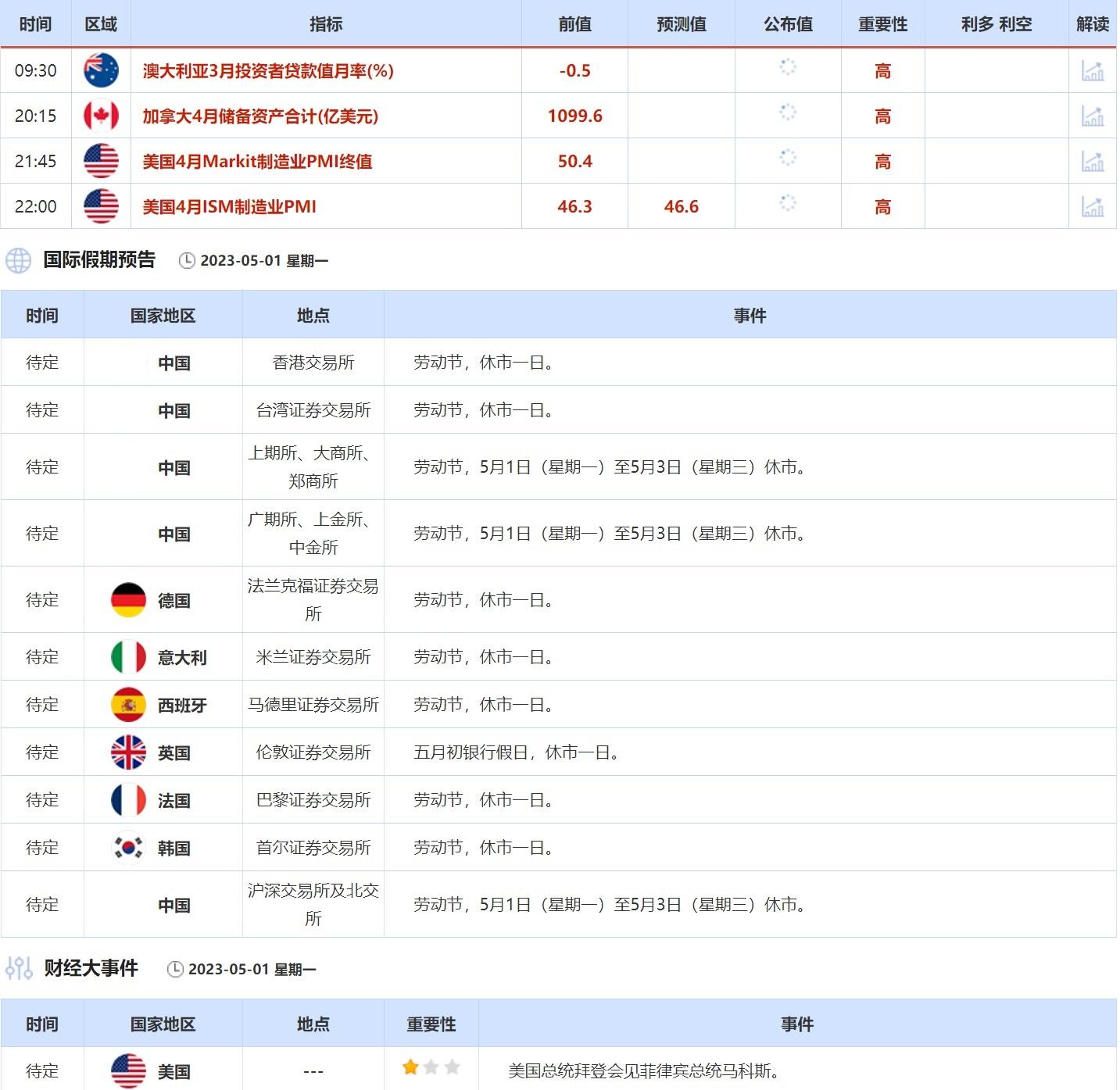 欧元兑美元收涨0.02%,报1.1024。欧洲央行5月4日将公布利率决议,随后欧洲央行行长拉加德召开货币政策新闻发布会。市场此前预期欧洲央行将加息50个基点。