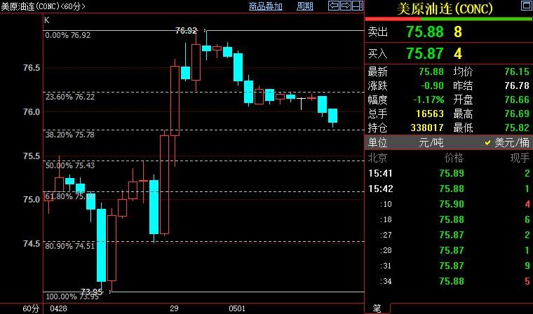 汇通财经APP讯——周一(5月1日),国际油价下跌,对美联储可能加息的担忧足以抵消从本月起生效的石油输出国及其合作伙伴(OPEC+)最新减产带来的支撑,NYMEX原油短线下看75.43美元。