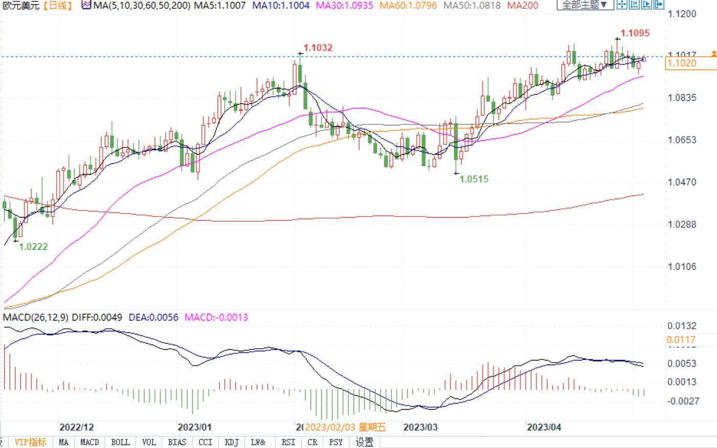 欧元兑美元日线图