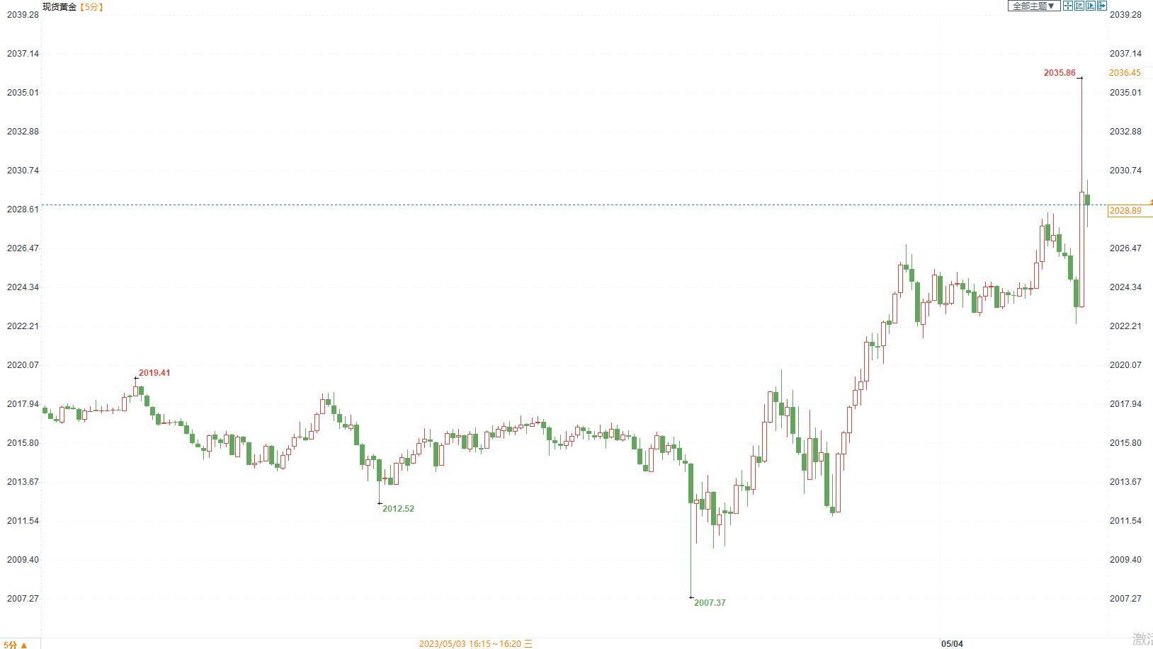 图:现货金价5分钟