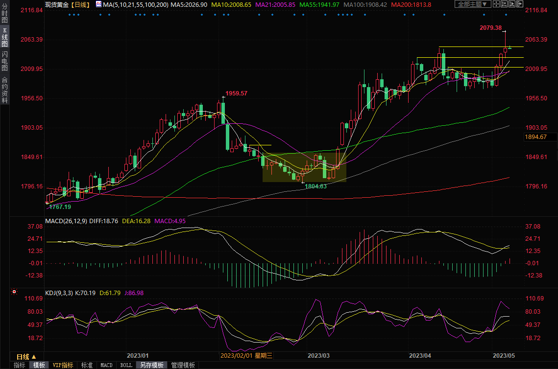 整体而言,美联储已经释放了暂停加息的信号,市场对美联储7月份降息预期升温,美元和美债收益率近期偏向弱势,给金价提供支撑,对美国银行业危机和债务违约危机的担忧也增加黄金的避险买需,金价后市仍偏向震荡上行。即使美国非农意外表现强劲,金价的回调空间仍可能受到限制。北京时间10:22,