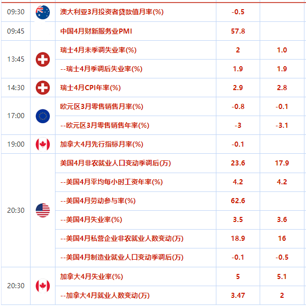 美元指数小幅走弱,目前下跌0.13%,交投于101.30附近,回吐了隔夜大部分涨幅,市场普遍等待晚间美国4月份非农就业报告,有迹象显示美国就业市场放缓,令美元承压。周四