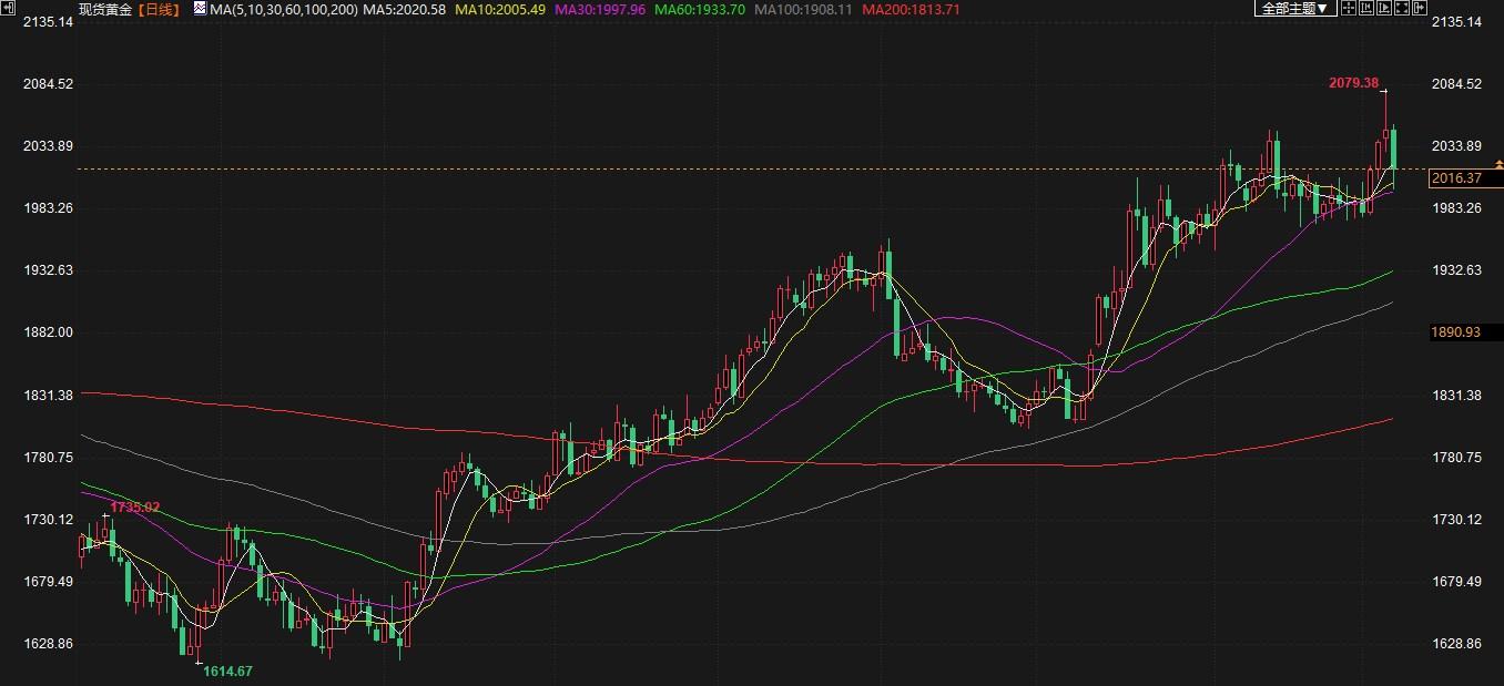 黄金北京时间周六(5月6日),金价周五急挫,此前强于预期的美国就业数据打击了对美联储的降息预期。截至收盘,黄金下跌1.61%,至2016.37美元。但本周上涨1.3%。在美联储周三暗示其加息周期可能结束后,现货金周四急升至2,072.19美元,略低于2,072.49美元的纪录高位。美国期金收盘价报2,024.80美元,下跌1.5%。