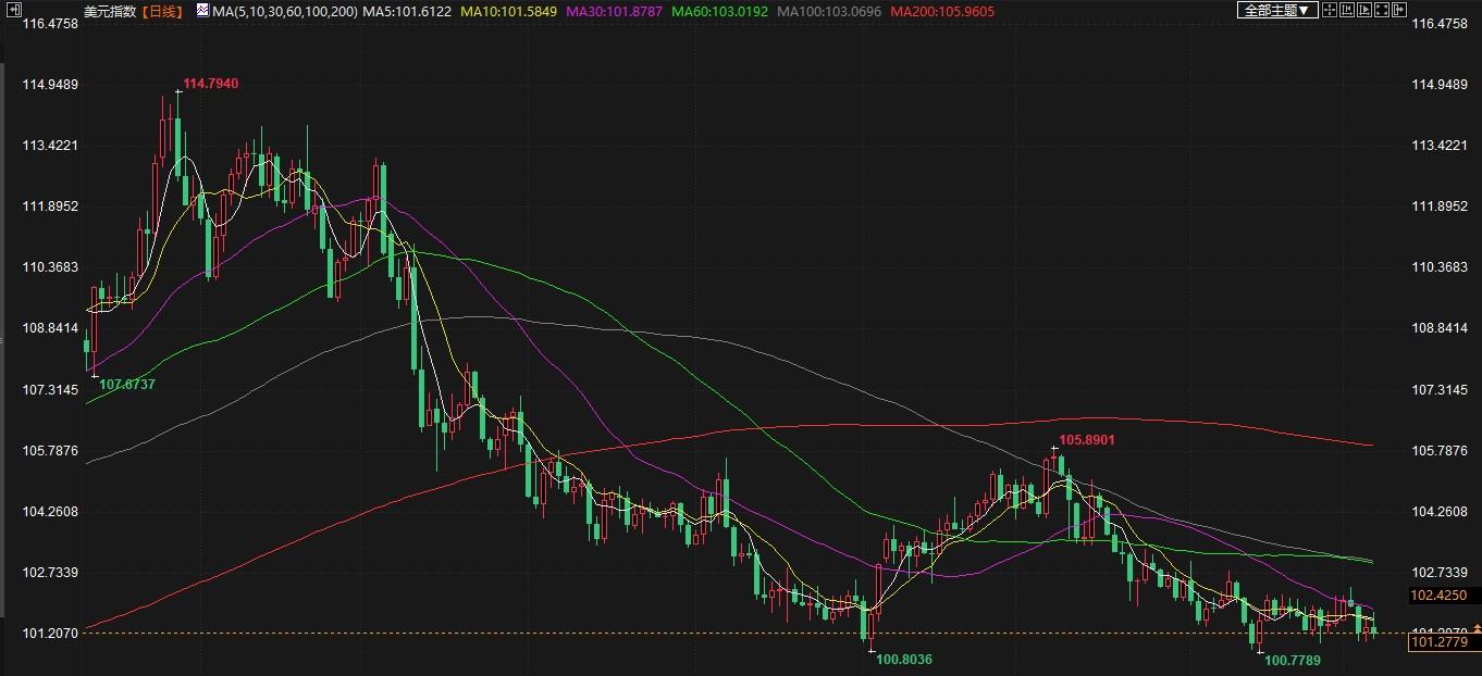 美元指数稍早触及101.77的日高,随后回落至101.19,当日下跌0.13%。欧元一度低见1.0967美元,随后反弹至1.1026美元,上涨0.11%。