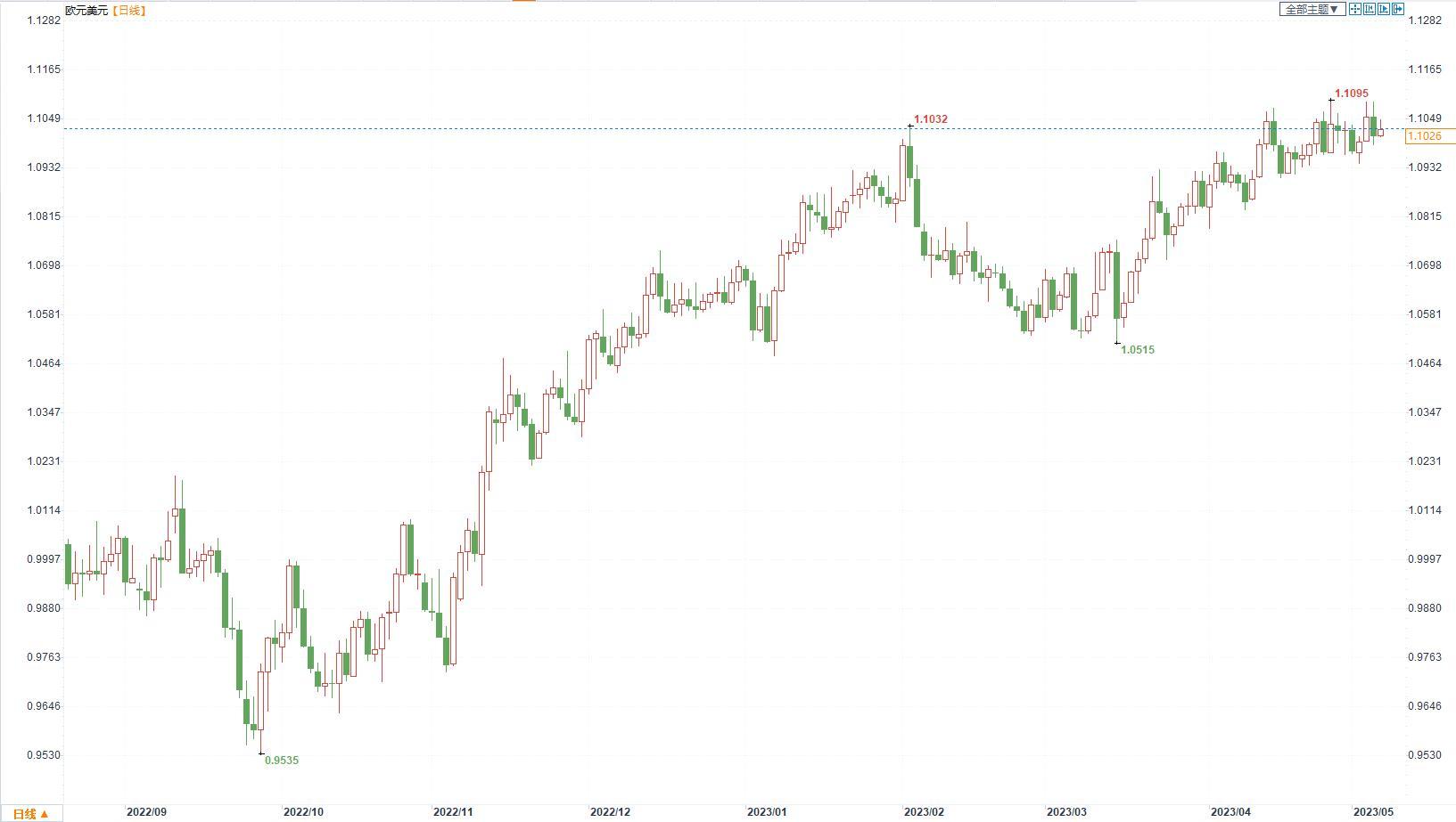 全球经济放缓的担忧情绪,也激发美元避险需求。周三,美联储加息25个基点,而欧洲央行在周四的会议上预计也会将加息25个基点。此外,英国央行也将在5月会议上加息以遏制高企的通胀。这加剧了全球经济放缓的担忧。