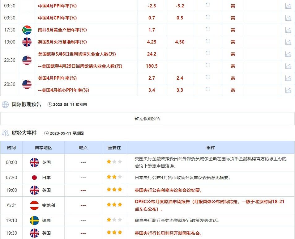 ④5月11日(周四)关键字:英国央行利率决议,美国截至5月6日当周初请失业金人数