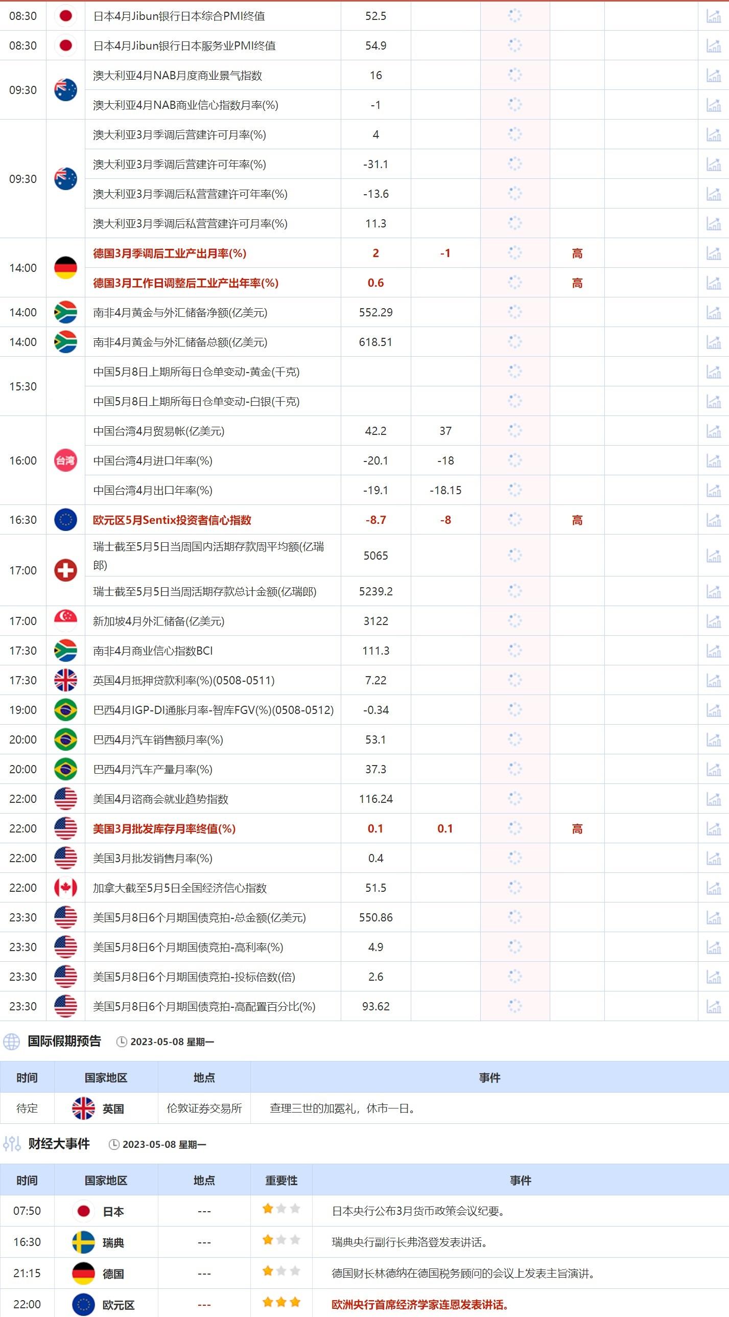 后续及时更新的财历数据请关注:【汇通网5月8日财经日历】