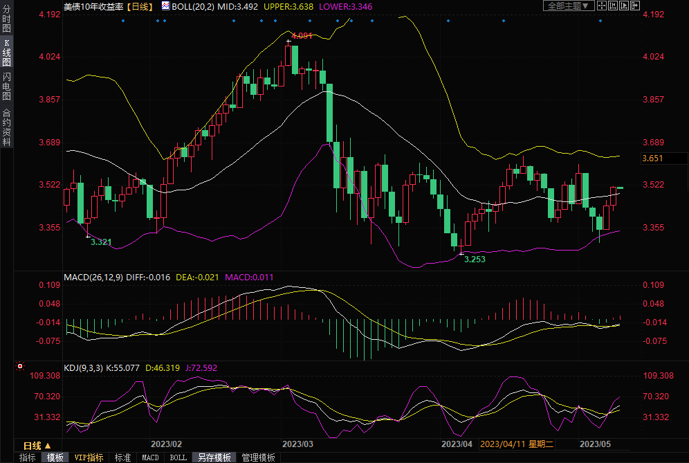10年期美债收益率周一上涨7个基点,报3.519%,为连续两个交易日收涨,上周四曾跌至3.296%的一个月低点。该收益率保持在4月6日触及的七个月低点3.253%之上。