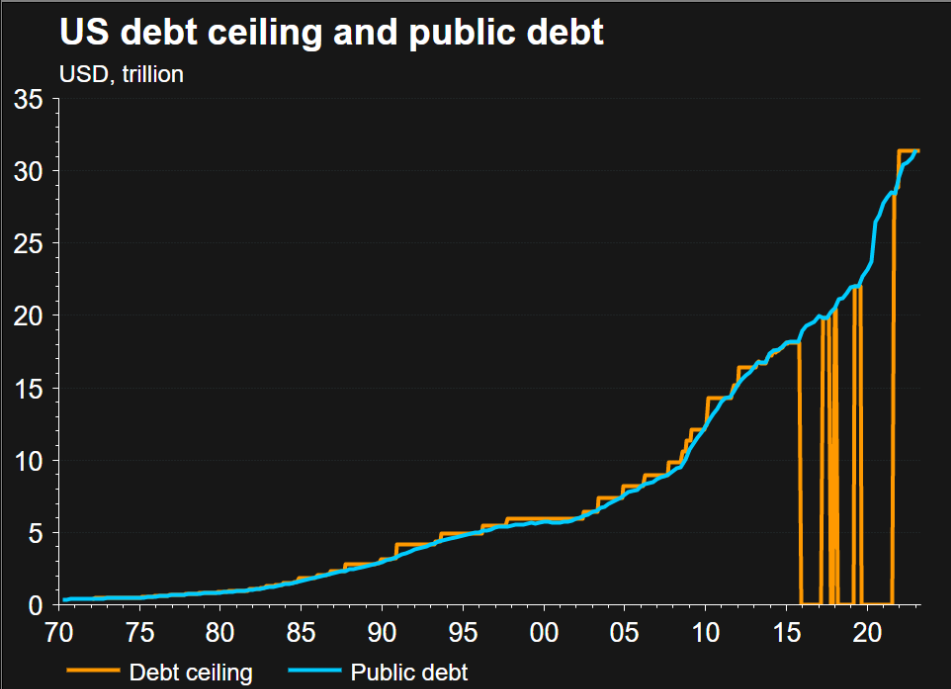 民主党总统拜登呼吁议员无条件提高联邦政府自行设定的债务上限。而美国众议院议长、共和党人麦卡锡表示,任何不削减开支来解决预算赤字扩大问题的协议,众议院都不会批准。
