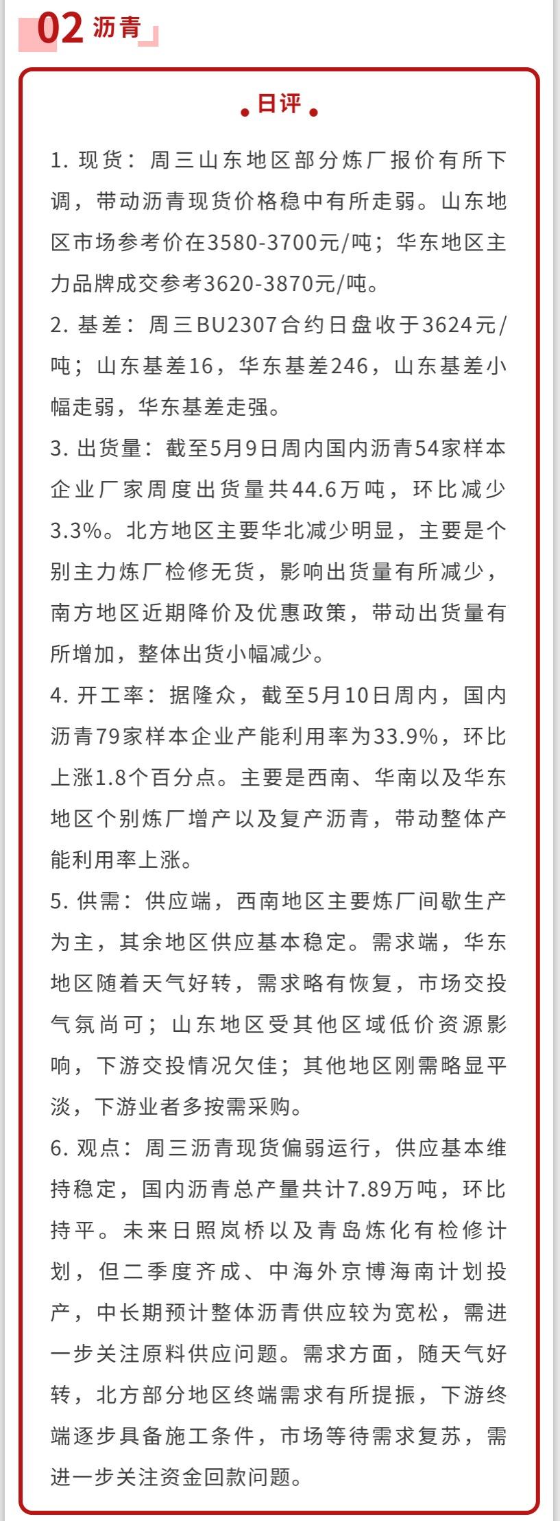 汇通财经APP讯——沥青:随天气好转,北方部分地区终端需求有所提振,下游终端逐步具备施?条件,市场等待需求复苏,需进?步关注资金回款问题。