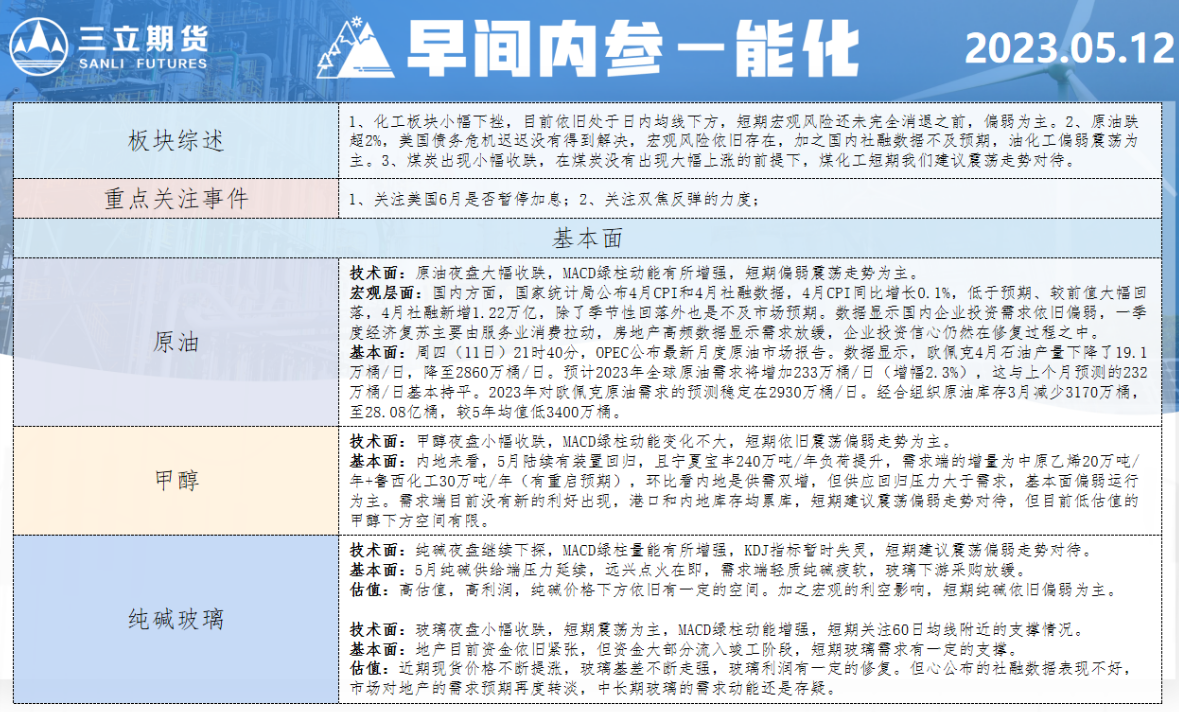 标题:三立期货5月12日早间内参——能化