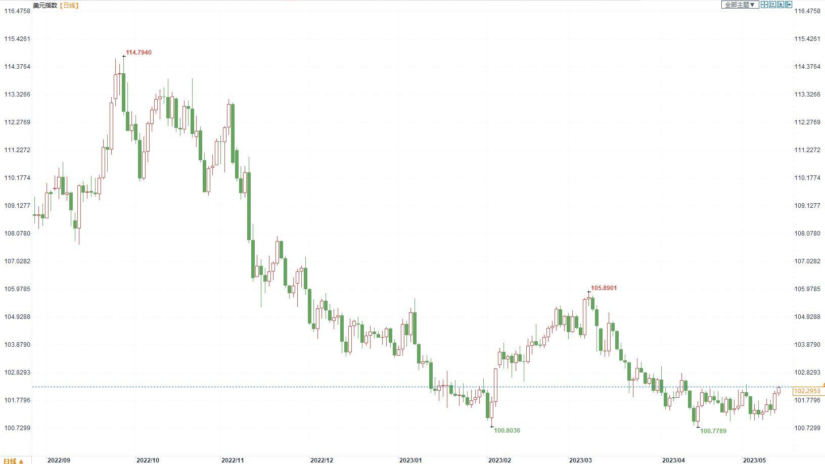 美元指数跳升至102上方的逾一周高点。这限制了以美元计价的黄金价格。