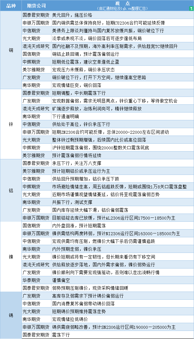 标题:期货公司观点汇总一张图:5月15日有色系(铜、锌、铝、镍、锡等)