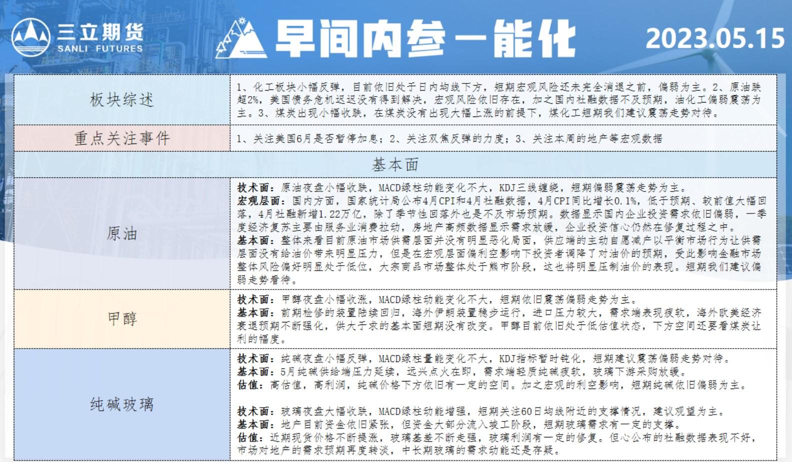 标题:三立期货5月15日早间内参——能化