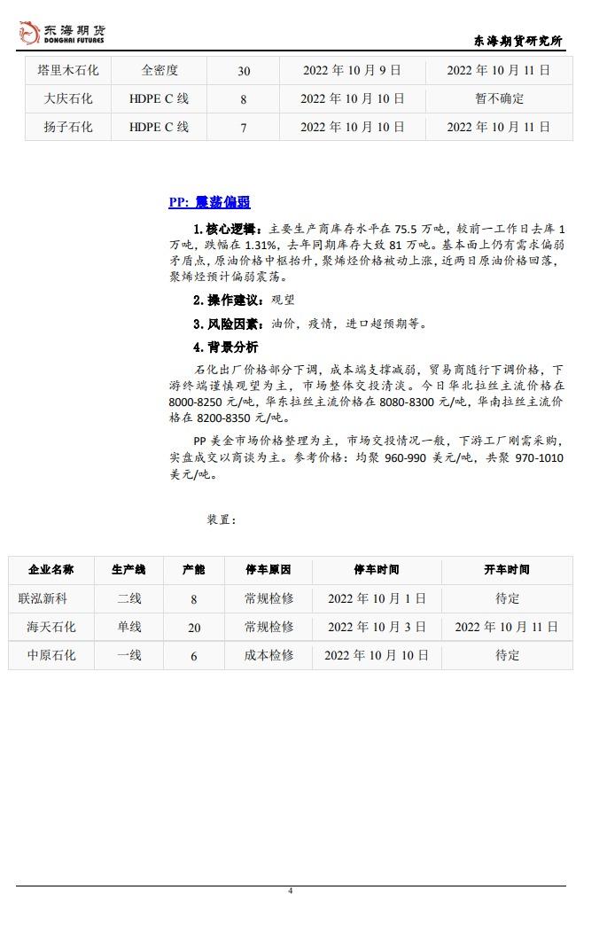 【东海期货10月13日产业链日报】能化篇:通胀指标暗示更多加息,油价继续下跌
