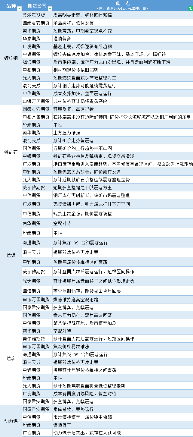 期货公司观点汇总一张图:5月19日黑色系(螺纹钢、焦煤、焦炭、铁矿石、动力煤等)