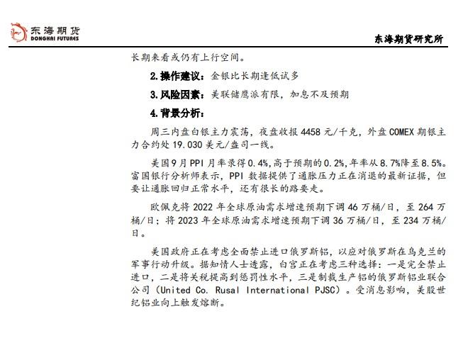 【东海期货10月13日产业链日报】贵金属篇:美联储会议纪要鹰中有鸽,金银短线反弹