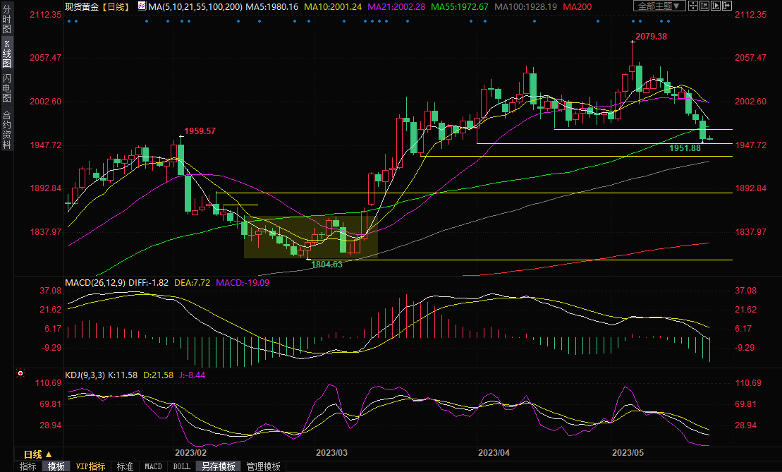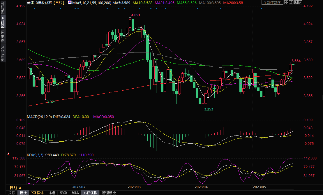 美元指数和美债收益率飙升至近两个月高位,对金价打压明显,而且对达成债务上限协议的乐观情绪也打压黄金的避险买需。