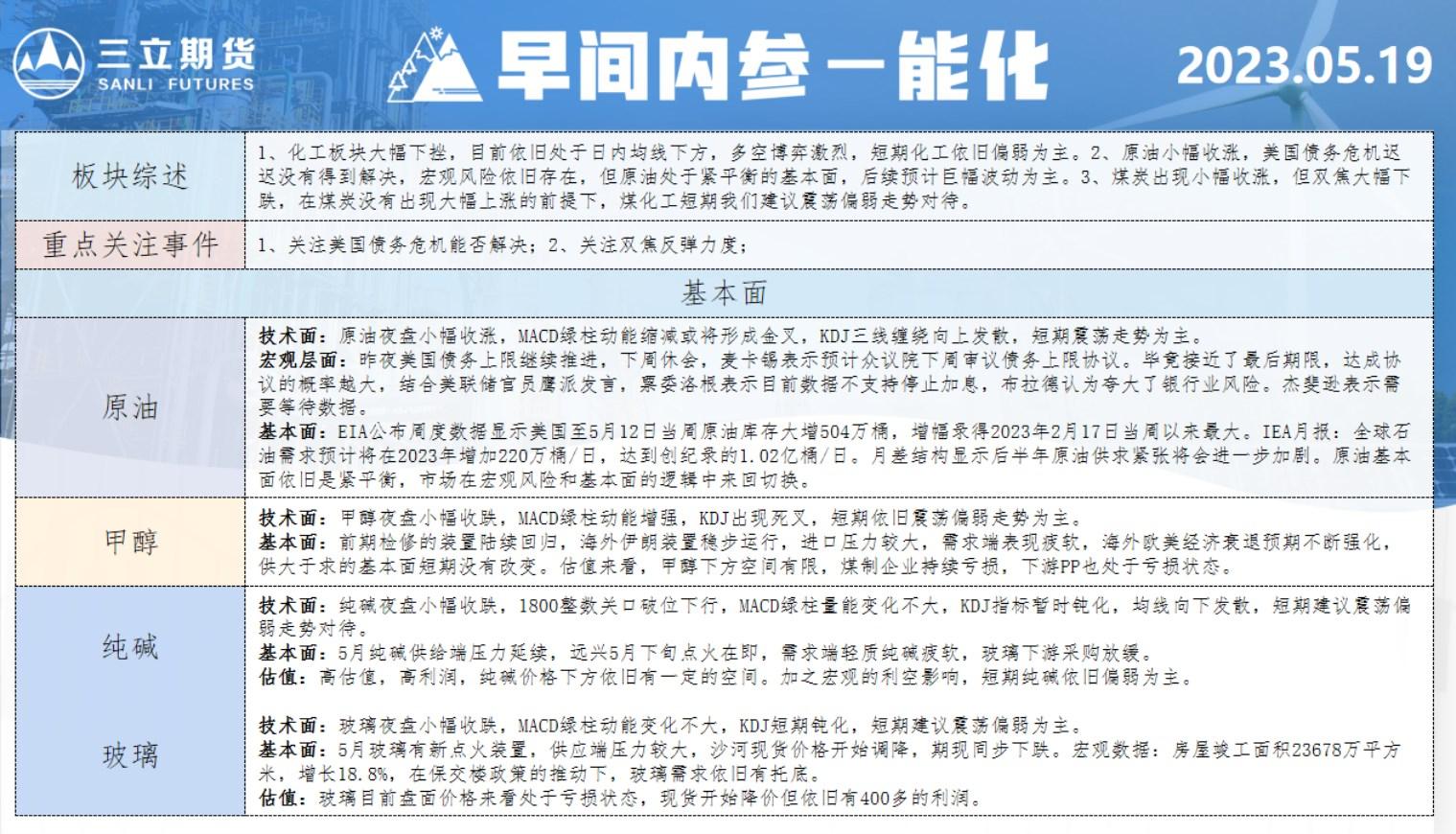 标题:三立期货5月19日早间内参——能化