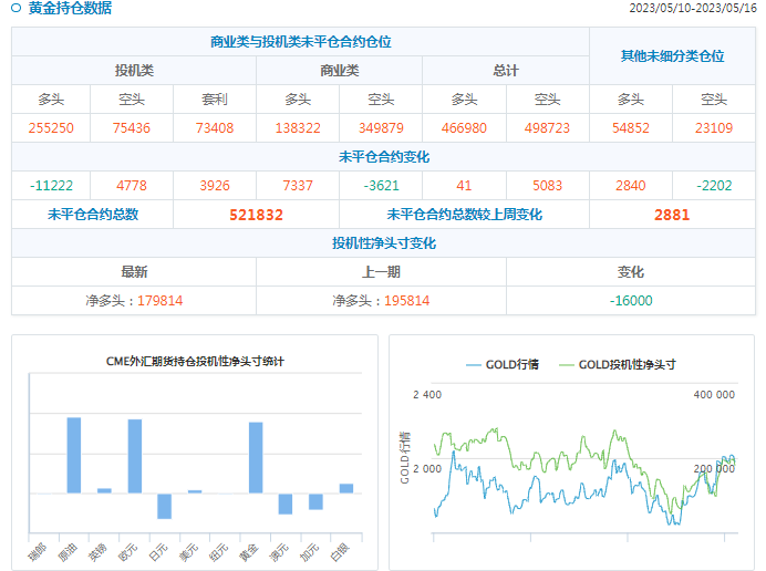 汇通财经APP讯——汇通财经据CFTC官网持仓数据:截至5月16日当周,COMEX黄金投机者将净多头头寸减少14836手,至131789手;美原油期货投机性净多头头寸减少11974手至142509手。