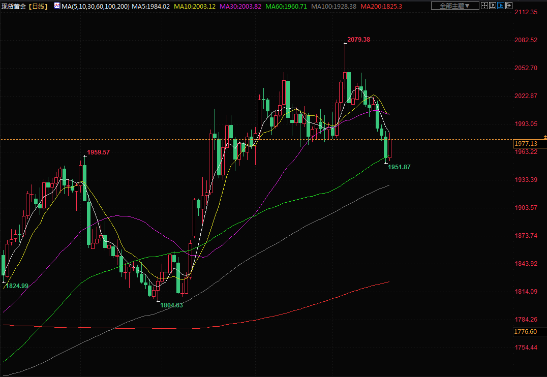 商品收盘情况:美国期金收高1.1%,结算价报每盎司1981.60美元。