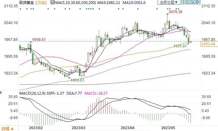 首先要做的是守住每盎司1950美元。Cholly说道:“我们可能非常接近底部了。我们已经取得了一些不错的成绩,它开始于2000美元左右。现在,不管美国债务上限问题如何,下行空间都变得有限了。即使本周末达成协议,金价可能企稳。”