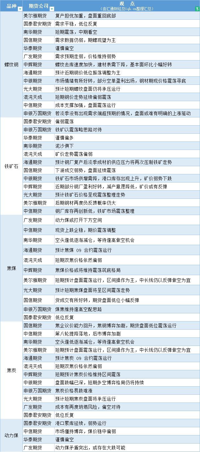 期货公司观点汇总一张图:5月23日黑色系(螺纹钢、焦煤、焦炭、铁矿石、动力煤等)