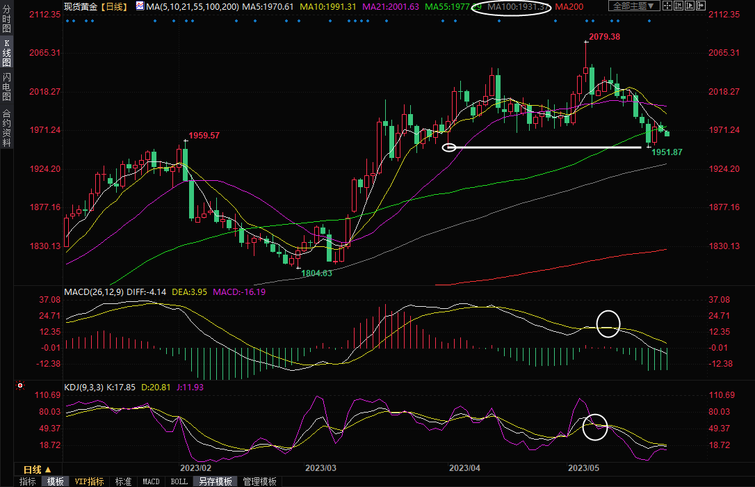 目前来看,短线基本面和技术面都偏向空头,继续关注1950关口附近支撑,如果下破该支撑,可能会进一步跌向100日均线1931.37附近。本交易日需要关注欧美国家5月份PMI数据的表现,留意达拉斯联储主席洛根的讲话,关注美国债务上限谈判的进一步消息。
