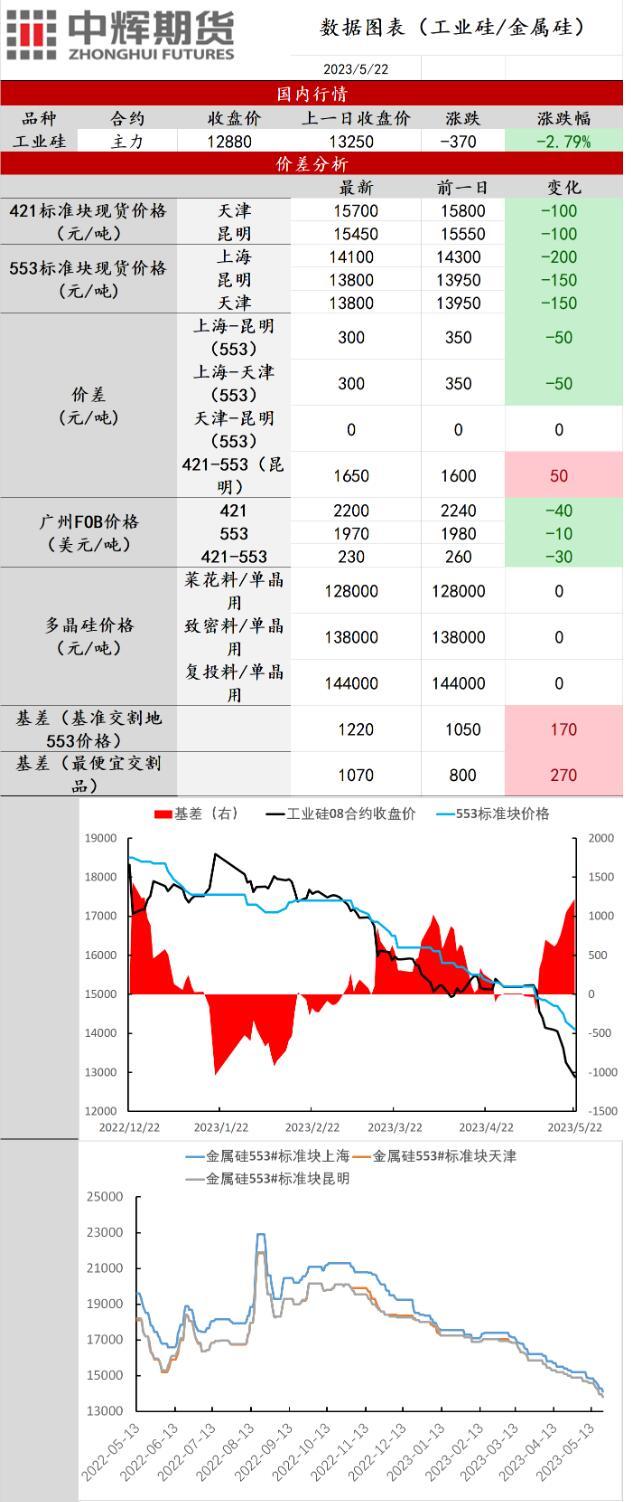 标题:中辉期货工业硅日报20230522:短期弱势难改