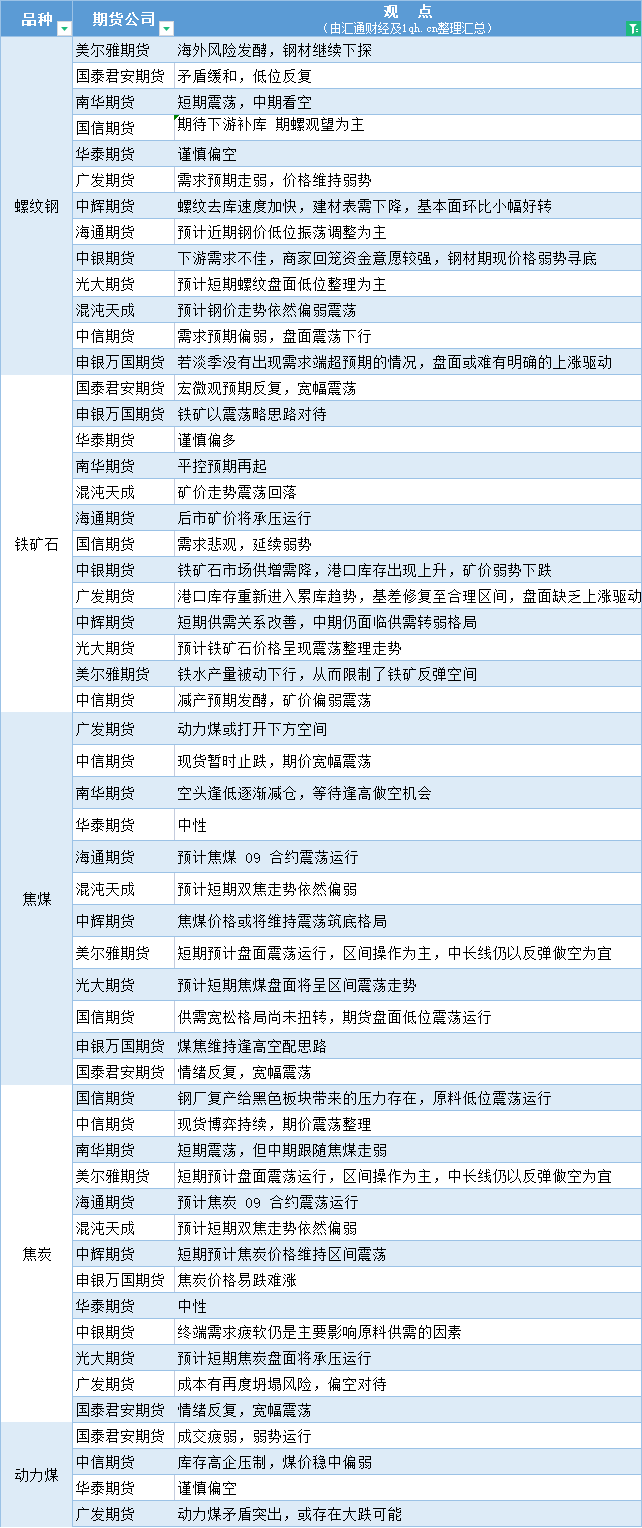 期货公司观点汇总一张图:5月24日黑色系(螺纹钢、焦煤、焦炭、铁矿石、动力煤等)