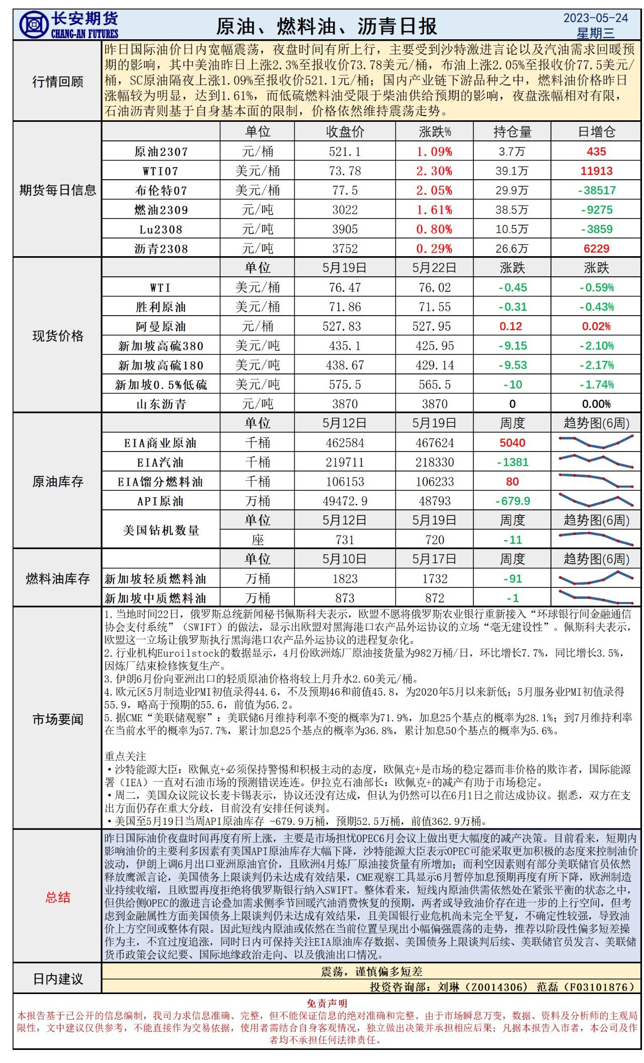 标题:长安期货5月24日原油日报:债务谈判仍旧未果,OPEC激进言论提振油价
