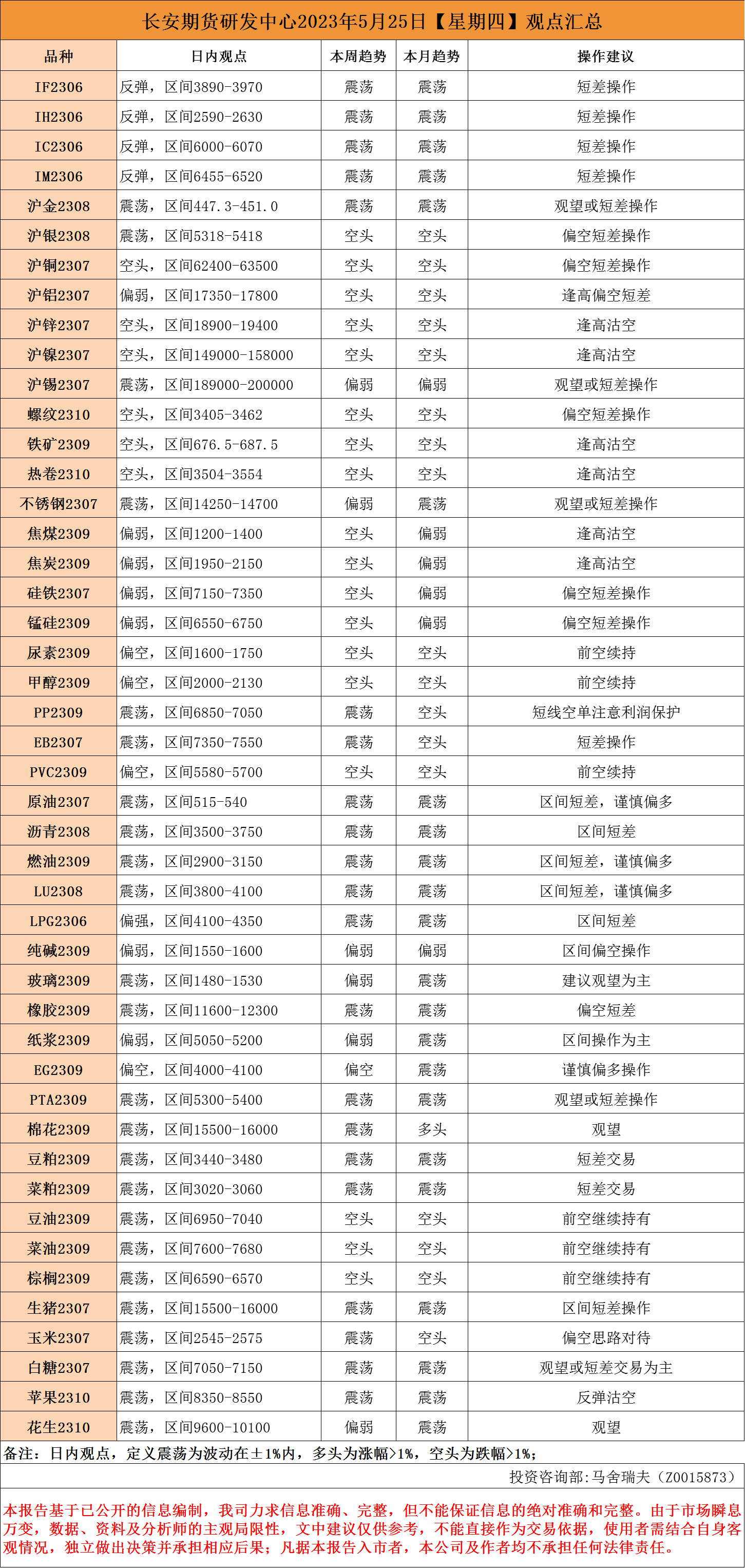 标题:长安期货5月25日早间看盘