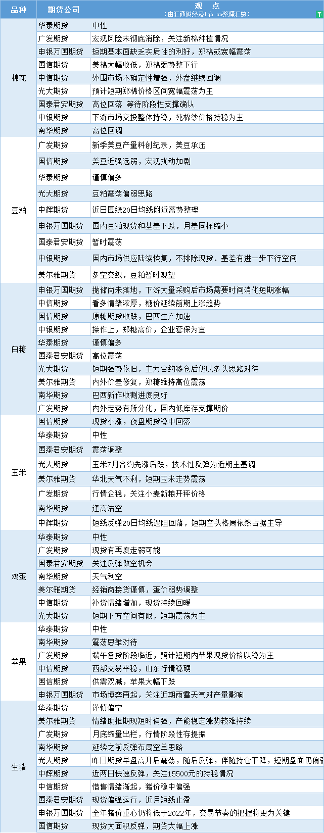 标题:期货公司观点汇总一张图:5月25日农产品(棉花、豆粕、白糖、玉米、鸡蛋、生猪等)