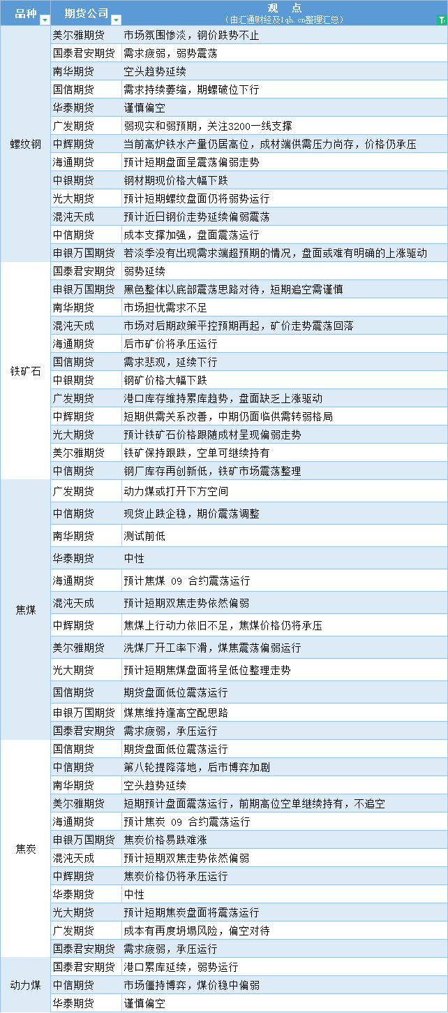 期货公司观点汇总一张图:5月25日黑色系(螺纹钢、焦煤、焦炭、铁矿石、动力煤等)