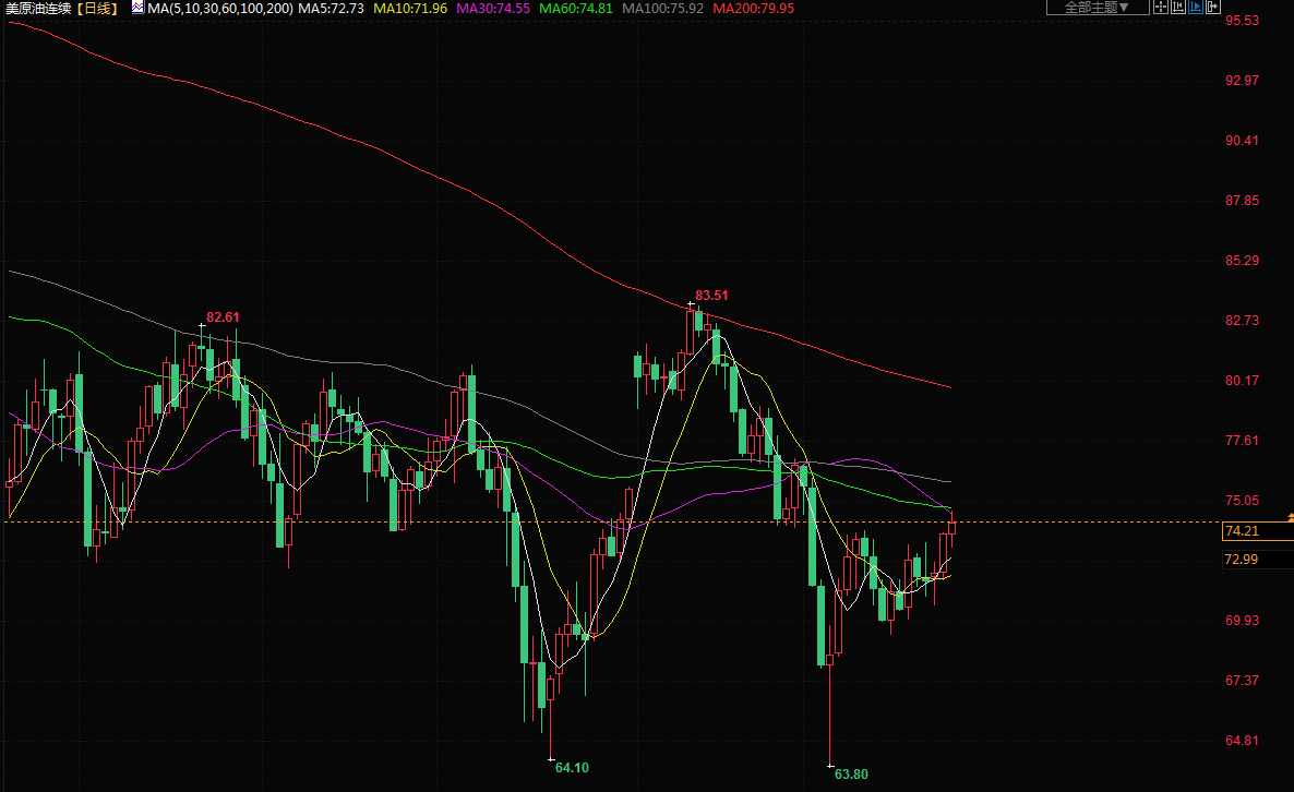 布伦特原油期货上涨2%,结算价报每桶78.36美元。美国原油期货上涨2%,结算价报74.34美元。
