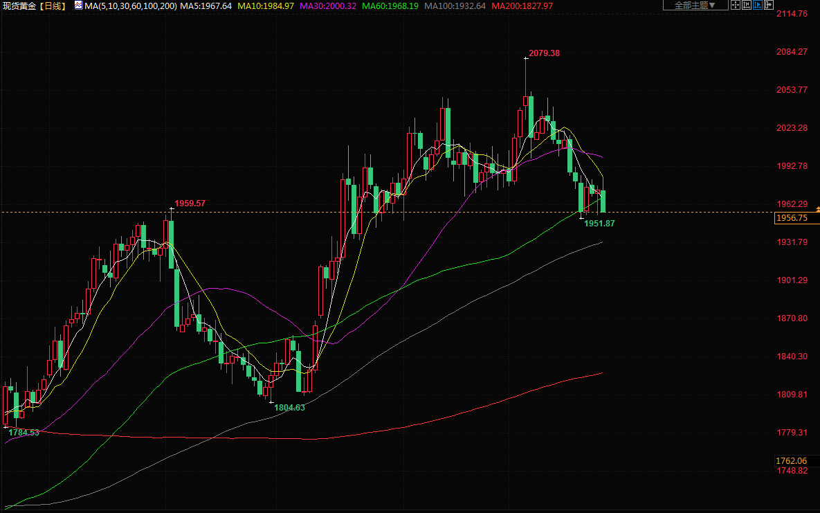 商品收盘情况:美国期金结算价报1964.60美元,下跌0.5%。