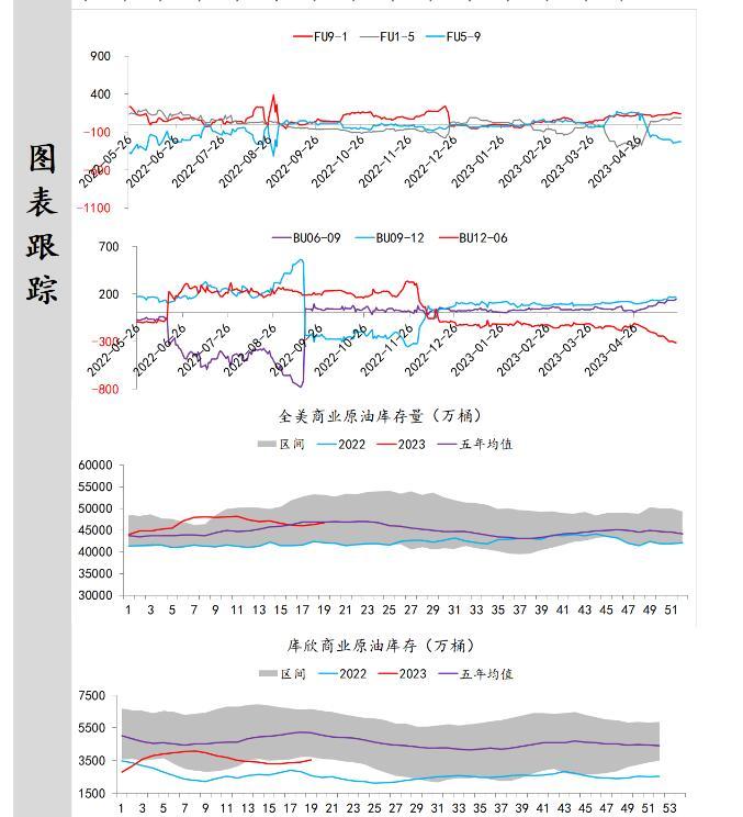 供应端:据美国能源信息署最新数据显示,截止2023年5月12日当周,包括战略储备在内的美国原油库存总量82721万桶,比前一周上升262万桶;美国商业原油库存46762万桶,比前一周上升504万桶;战略原油库存量35959万桶,比上一周下降242万桶;美国汽油库存总量21833万桶,比前一周下降138万桶。商业原油库存比去年同期高11.12%,比过去五年同期低0.14%;汽油库存比去年同期低0.84%,比过去五年同期低约6.40%;馏分油库存比去年同期高0.92%,比过去五年同期低16.39%。