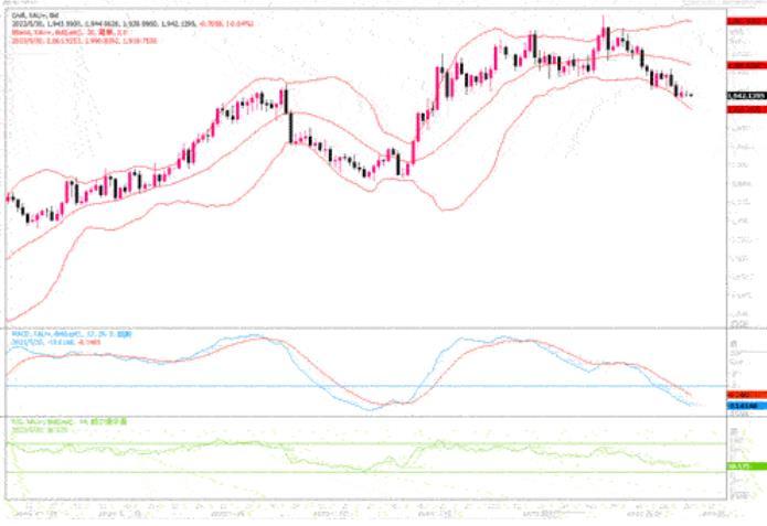技术层面上,日线级别图尚:震荡下跌,金价上周守住了100日均线和近两个月低点的关键支撑,KDJ发出短线超卖信号,短线金价存在一些反弹调整的机会,初步阻力在5日均线1953.11附近,10日均线阻力在1964.25附近,若能收复上述位置,则削弱后市看空信号,然后是1980关口附近阻力,55日均线阻力在1985.98附近。而下方的初步支撑在100日均线1935.48附近,如果失守该支撑,则增加短线继续看空信号,3月17日低点支撑在1918.15附近,1804-2079涨势的61.8%回撤位支撑在1909.51附近,如果下破上述支撑水平,则增加中线看空信号。