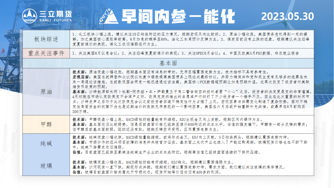 标题:三立期货5月30日早间内参——能化