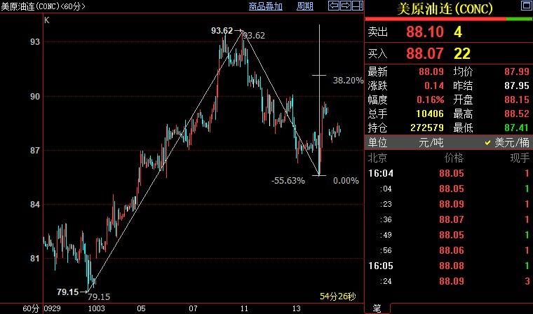 北京时间16:06,NYMEX原油期货上涨0.16%至89.25美元/桶;ICE