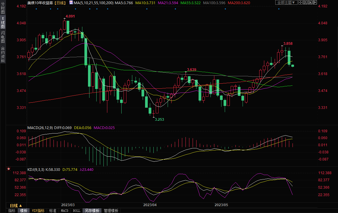 美国10年期国债收益率周二下跌,就提高美国债务上限和避免潜在违约达成协议让投资者松了一口气。10年期国债收益率周三下跌3.09%,为5月2日以来最大单日跌幅,至3.702%;周三亚市延续跌势,目前下跌0.54%,交投于3.681%附近。
