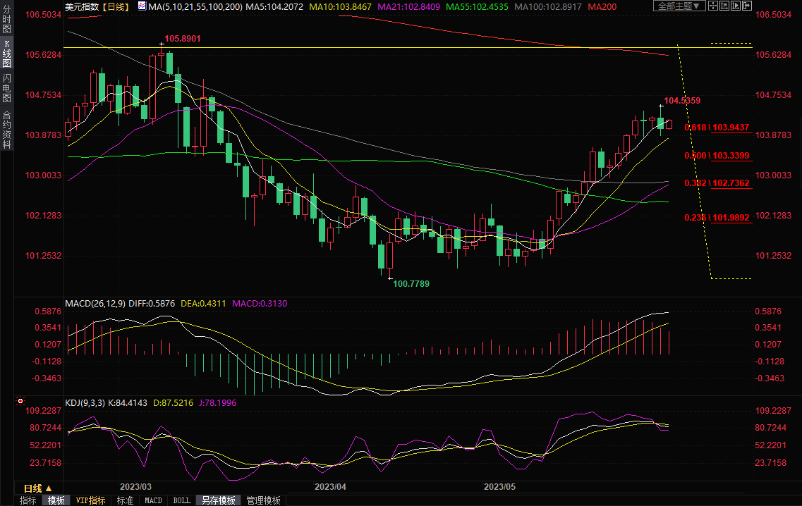市场现在押注,美联储在6月13-14日的会议上加息25个基点的可能性为66.6%。利率上升会削弱零收益黄金的吸引力。交易员们也几乎放弃了他们之前对今年下半年将降息的所有预期,现在仅预计将在12月降息10个基点。本交易日需要关注美国4月JOLTs职位空缺、美联储官员讲话、美联储公布经济状况褐皮书,此外美国众议院就债务上限协议进行投票,需要重点关注。留意德国5月份CPI数据和欧洲央行官员讲话。